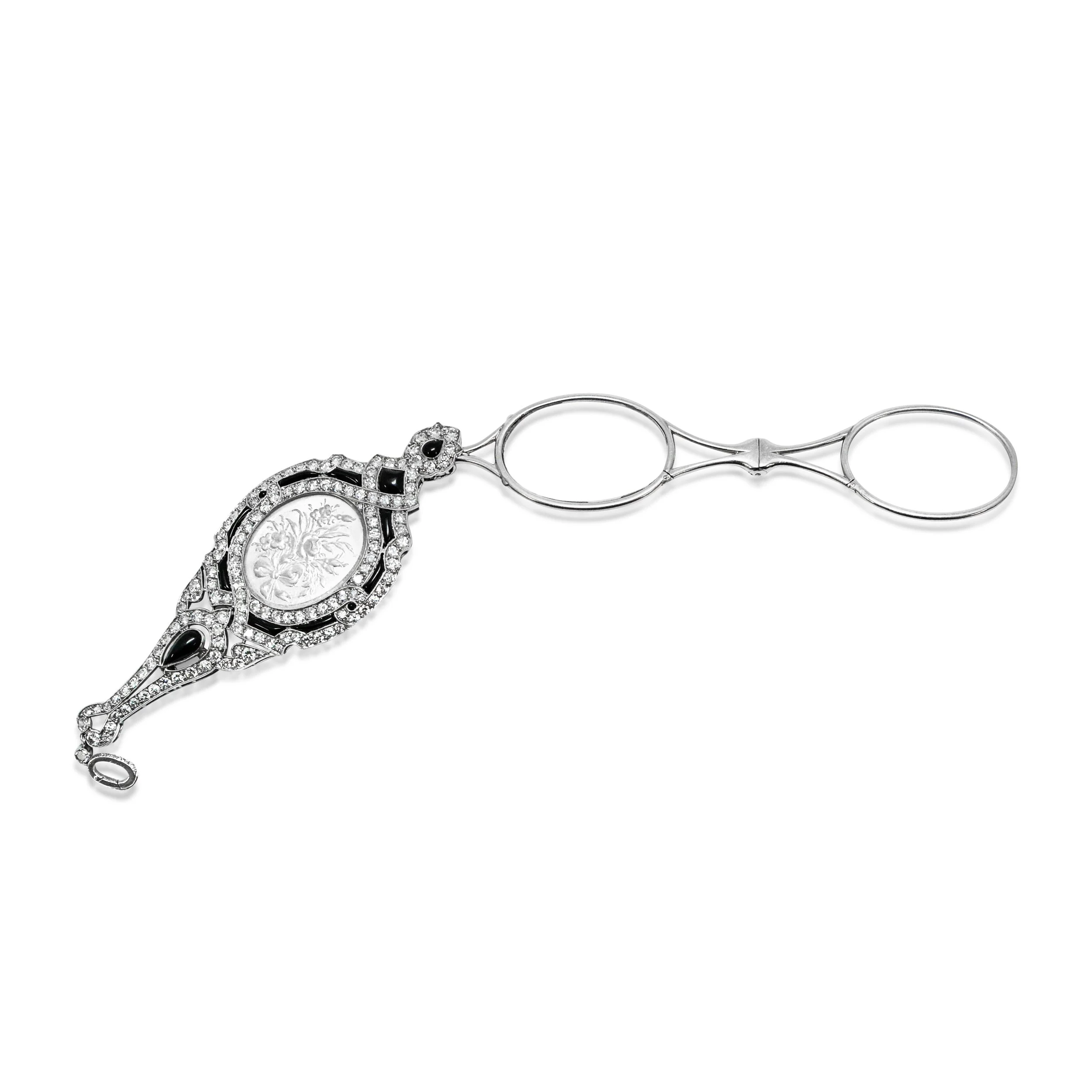 An Art Deco Diamond, Onyx and Rock Crystal Lorgnette, circa 1920's