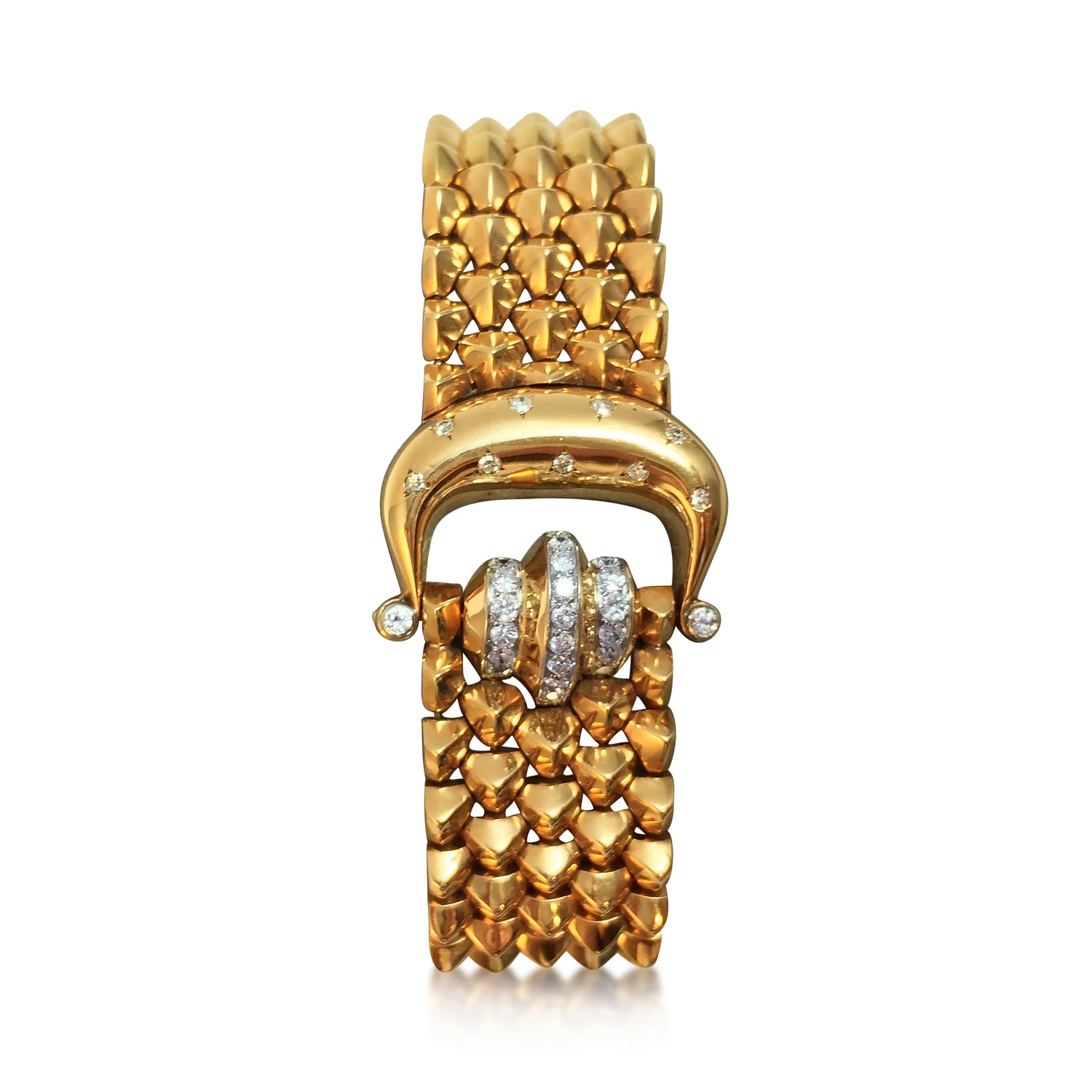 An 18k Retro Yellow Gold and Diamond Bracelet, By Mauboussin, Circa 1950